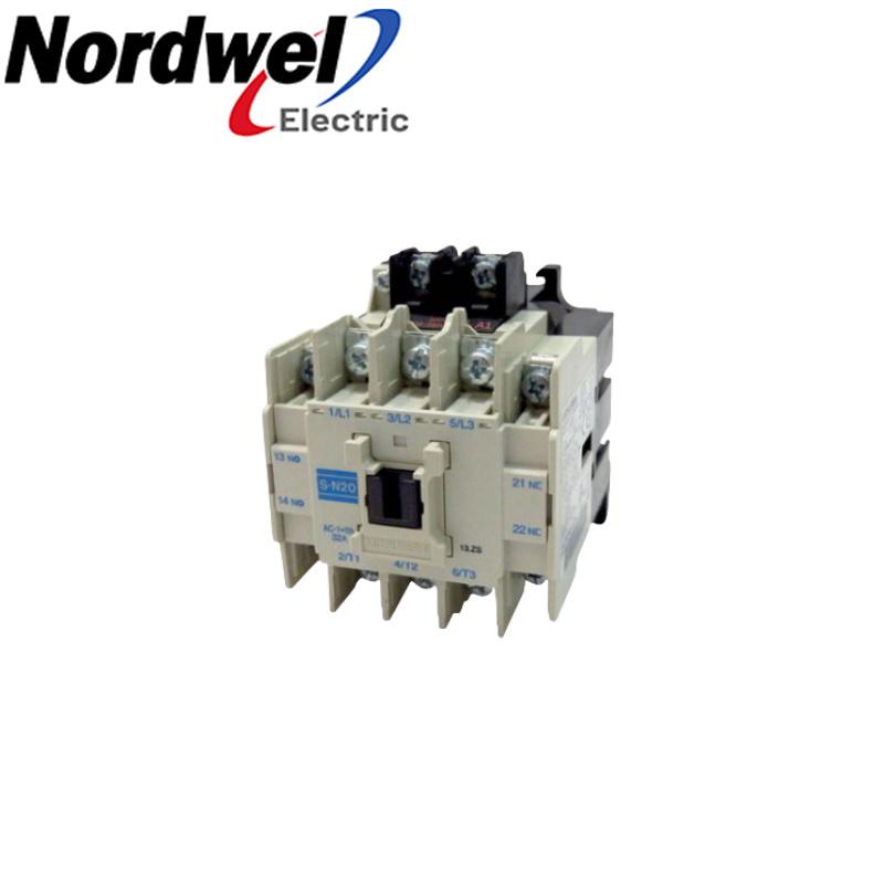 Magnetic contactor - Direct On Line (DOL) / FVNR (Full-Voltage Non-Rv.) - Mitsubishi Electric (MS-N series) - 3-poles (3P) - Rated current 22A (380Vac / 400Vac / 415Vac / 440Vac; AC-3) - Rated power 11kW (440Vac; AC-3; IEC) / 10HP (480Vac; 3-phase; UL) - Control coil voltage 200Vac-240Vac (50Hz/60Hz) (208Vac / 220Vac / 230Vac) - with 1NO+1NC aux. contacts - Screw-clamp connections - DIN rail / Surface mounting - 63mm width - equivalent to S-N20AC200V - replaces product S-N20 AC220V