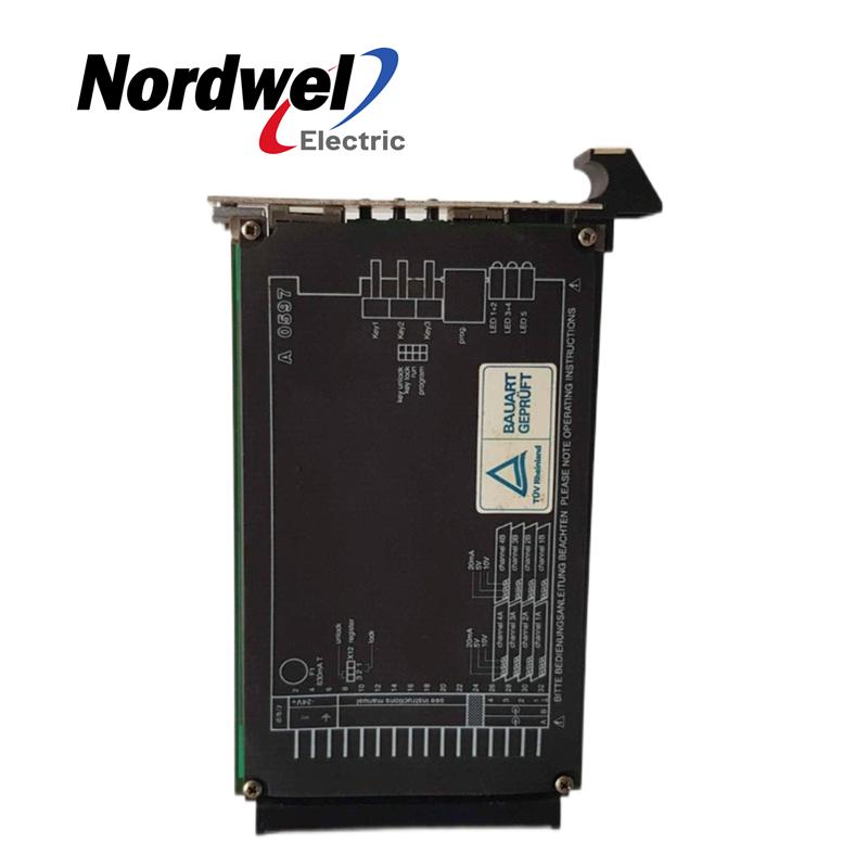This module has four analog inputs and four logic pulse outputs. The module is programmable, so the